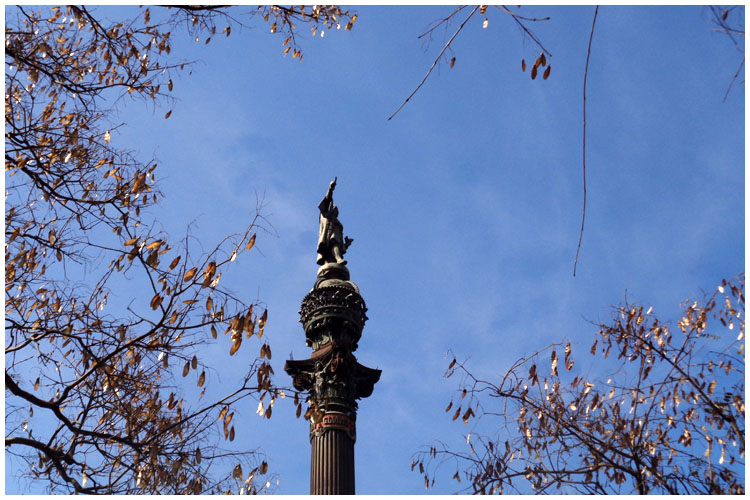 Am südlichen Ende der Rambla steht eine Statue von Christoph Kolumbus auf der Placa Portal de la Pau.