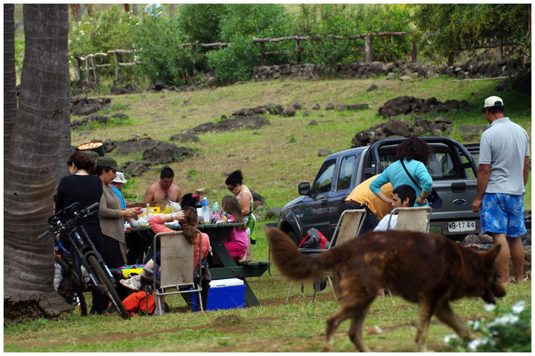 Der weiße Strand im Norden der Insel gehört mit seinen Palmen und den Statuen von Ahu Nau Nau zu den beliebtesten Picknickplätzen.