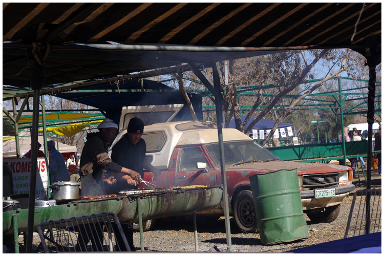 Köstlich und immer frisch gemacht sind die zahllosen, kulinarischen Spezialitäten wie Boereworsrolle, Skilpadjies, Roosterkoeke und Koeksisters mit Kaffee.