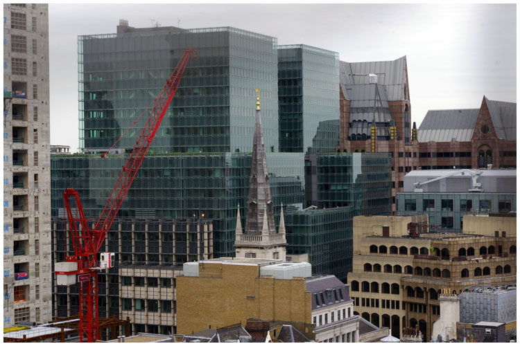 "Während sich der 180 Metern hohe Swiss-Re-Tower mit den anderen Neubauten die Skyline teilte, verlor sich die St. Margaret Pattens Church of England endgültig im Architekturgewirr."