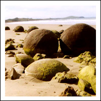 Auf halber Strecke zwischen Dunedin und Oamaru weist ein schmales Schild den Weg nach Moeraki. Das kleine Nest am Südpazifik wäre nur eines von vielen, wenn es nicht durch seine gewaltigen Steinkugeln auf sich aufmerksam machen würde. In der Maori-Überlieferung heißt es, dass die „Moeraki-Boulders“ jene zu Stein gewordenen Kalebassen und Vorratskörbe sind, die von den Ahnen aus ihrem Kanu an Land geworfen wurden. Der Gedanke gefällt mir.