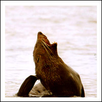 Hinter der Kurve endet die Straße. Nur ein schmaler Pfad schlängelt sich noch über die Klippen. Der Atlantik hat sich weit zurückgezogen. Auf den von der Ebbe freigegebenen Klippen sonnen sich zahllose Seelöwen im letzten Abendlicht. Keine zwei Meter neben mir hebt sich ein graues Weibchen unscheinbar vor dem grauen Felshintergrund ab. Kaikoura ist neben seinen Walen auch für seine Seelöwenkolonie bekannt. Ich setze meinen Weg fort. Ein ohrenbetäubender Lärm beherrscht den Küstenstreifen. Tausende brütende Möwen in roten Strümpfen und Schnäbeln warnen jeden Eindringling. Als ich den ausgewiesenen „Cliff-top walk“ weitergehe, passiere ich ziemlich nah die Brutplätze. Zu nah, wie ich erkennen muss. Plötzlich fliegen fünf bis sechs Möwen auf mich zu. Stoßen unter wütendem Geschrei tief zu mir hinunter. Die spitzen, feuerroten Schnäbel vor Augen läuft mir ein Schauer den Rücken hinunter. Ich fühle mich augenblicklich an Hitchcocks „Vögel“ erinnert und trete den Rückzug an. Jetzt gilt es nur die Nerven zu behalten. Schnell haben auch die Möwen erkannt, dass sie die Sieger sind und ziehen sich zurück.