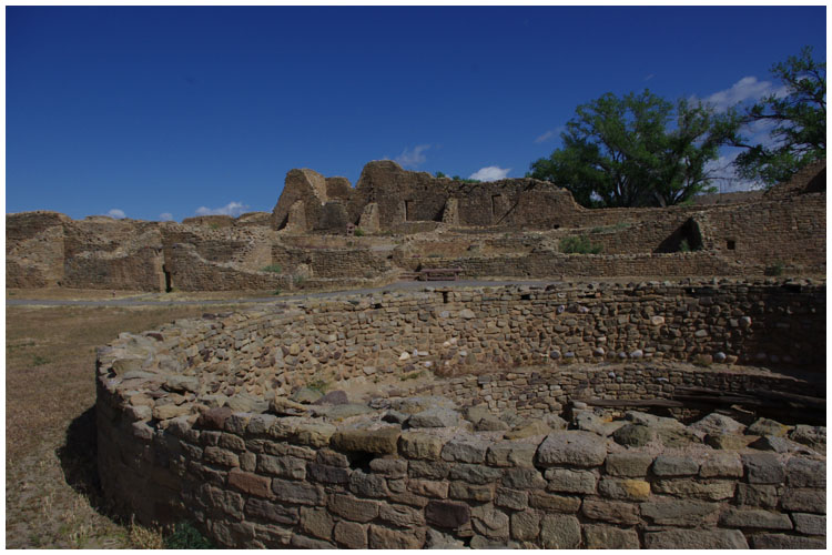 "Die Ruinen von Aztec gehörten vermutlich zu einem weit verbreiteten Handelsnetz, dessen Zentrale der Chaco Canyon bildete und die von den Archäologen „Ausleger“ genannt werden."