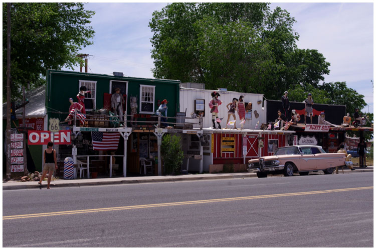 "Andere Ortschaften waren nur zum Tanken gut und lockten nicht mit einem Aufenthalt. Doch Seligman hatte ausrangierte Cadillacs, alte Straßenschilder und Motels, die den Mythos aufrecht hielten."