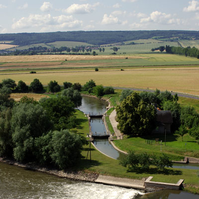 Die Wendelsteiner Schleuse ist eine Stemmtorkammerschleuse. Sie umgeht das feste, mit einem Freifluter versehene, Wehr. |